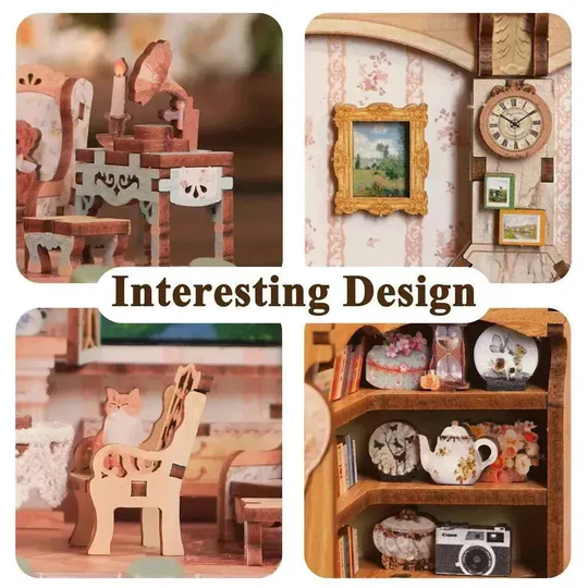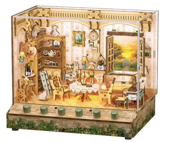 Tonecheer, DIY 3D Houten Puzzel met 6 verschillende geluidseffecten en stofkap, Miniature House The Pastoral Home, TQ400, 18×14,5×15,4cm