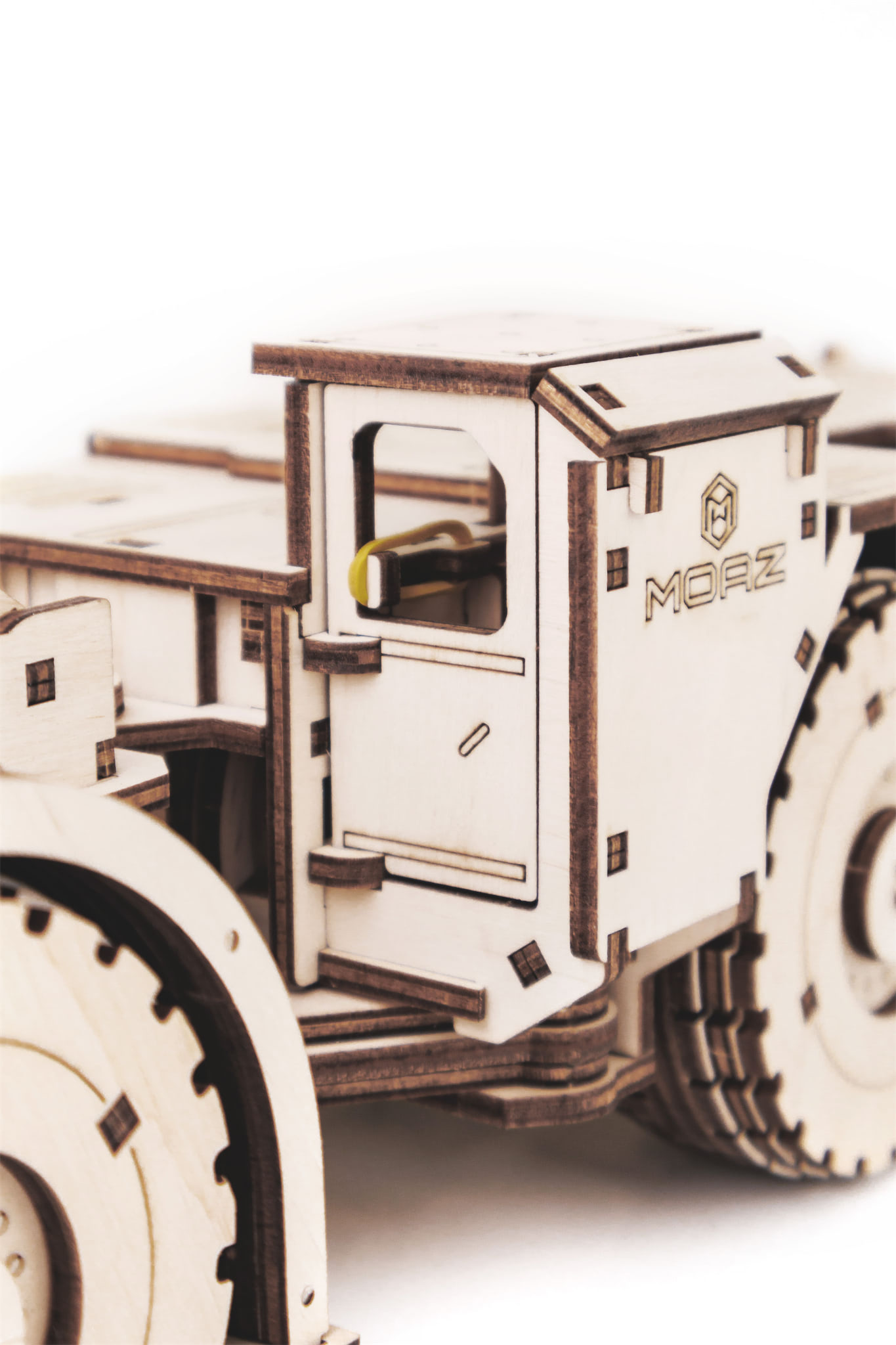 Binnenin zit een veermotor, de laadbak kan worden opgetild en de cabinedeur kan open, wat een interactief element toevoegt.