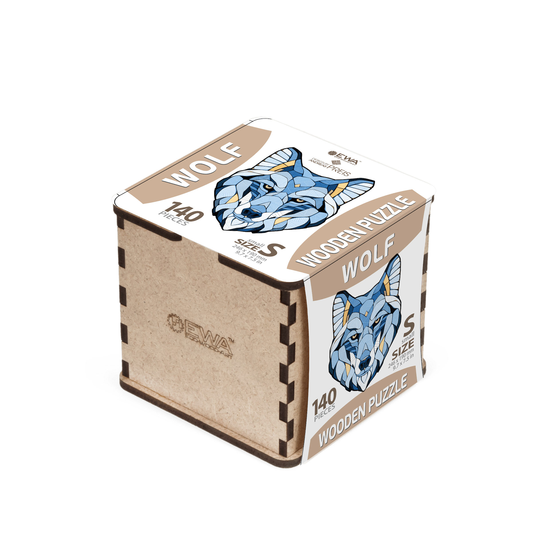 De houten puzzel WOLF dompelt je onder in de mystieke wereld van wolven. Elk detail van deze puzzel weerspiegelt het nachtelijke bos, de volle maan, de spanning van de jacht en het ijzige gehuil. Na montage krijg je een afbeelding van een wolvenkop, gemaakt met speciale aandacht voor detail. De ogen van de wolf schitteren van geel vuur. Deze puzzel laat je niet los totdat je hem hebt voltooid.