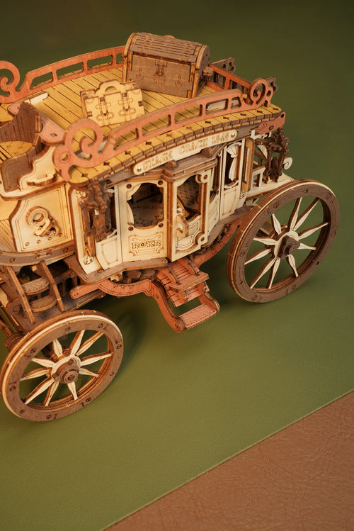 Ga terug naar de klassiekers! Een unieke houten postkoets nadert langzaam met een prachtig deuntje!