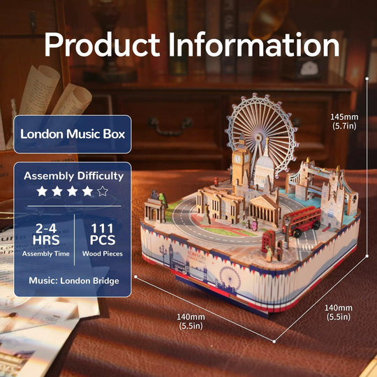 Tonecheer, Muziekdoosje, DIY 3D Houten Puzzel, London, TQ066, 14x14x14,5cm