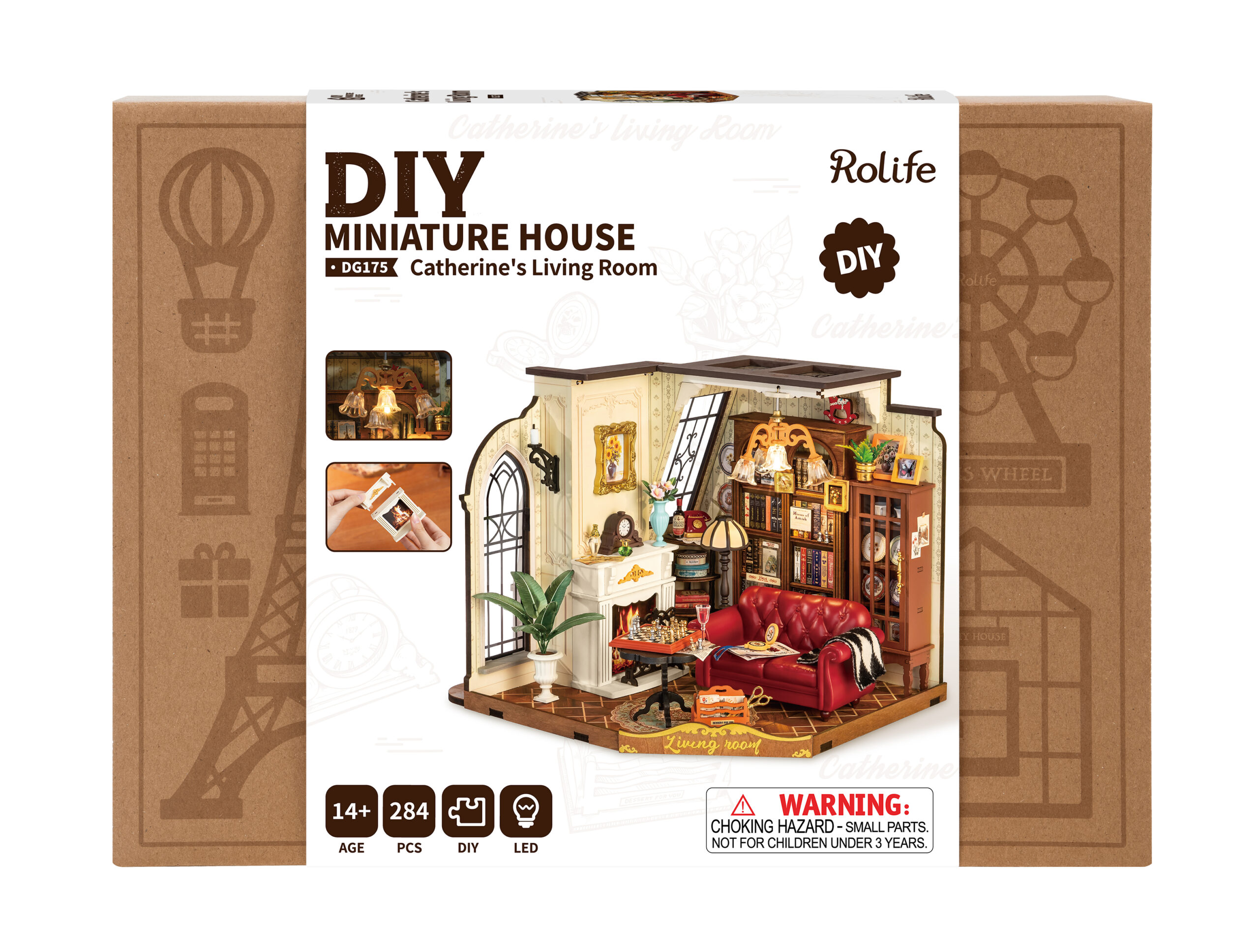 Rolife heeft door de jaren heen doe-het-zelf miniatuurhuizen met diverse thema’s ontworpen. Catherine is een prachtig voorbeeld van stille verfijning – iemand die zich omringt met betekenisvolle objecten die haar emotionele diepgang en innerlijke gratie onthullen. Geen magische elementen hier; Catherines woonkamer is meer ontworpen voor verbinding dan voor fantasie.