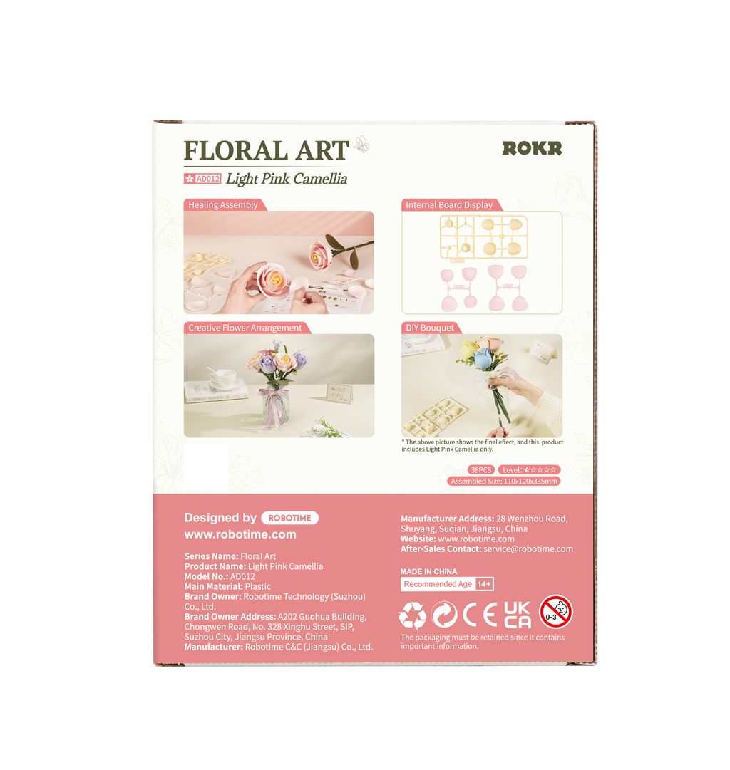 Robotime, DIY 3D Puzzel Light Pink Camellia, AD012, 7x9x34,5cm