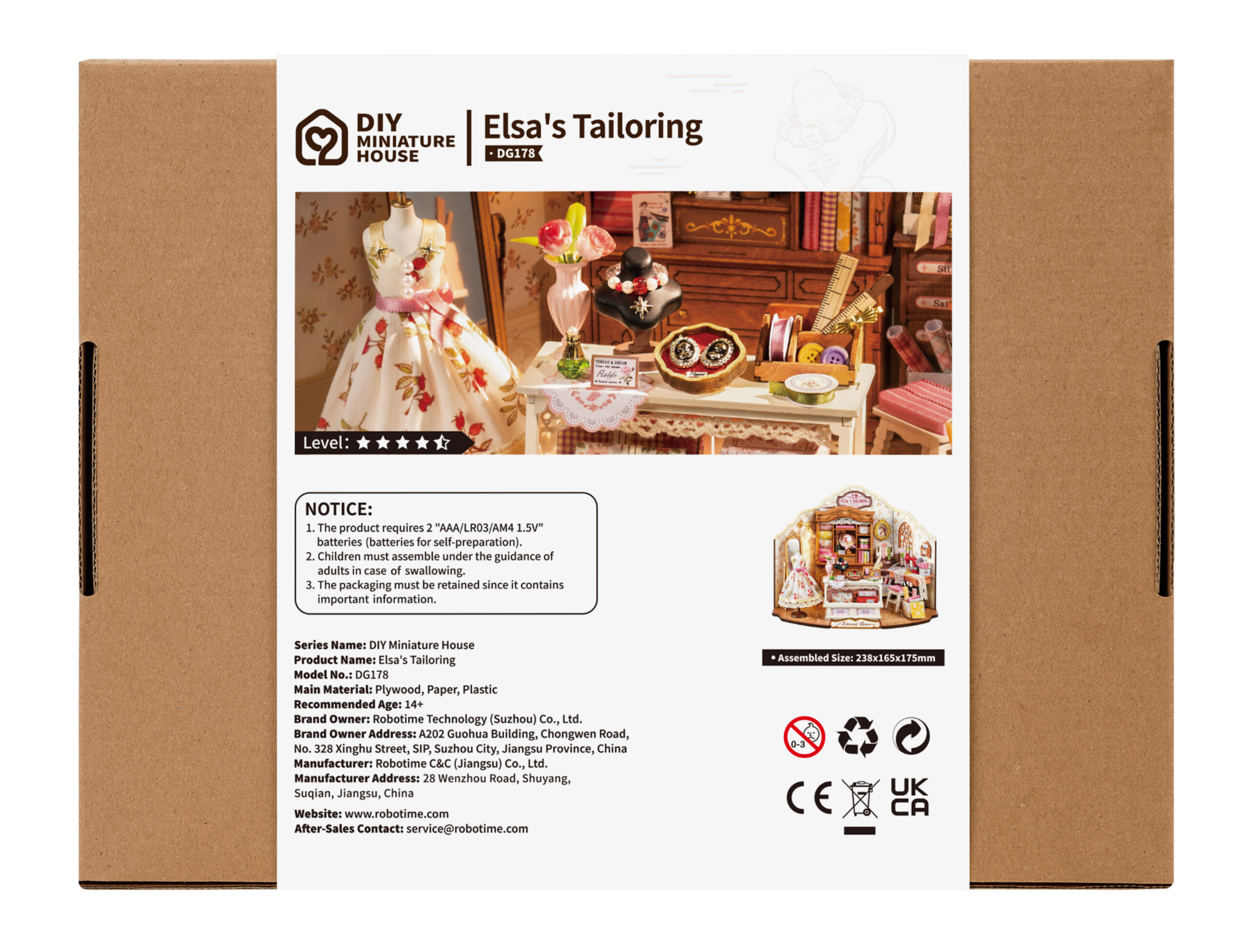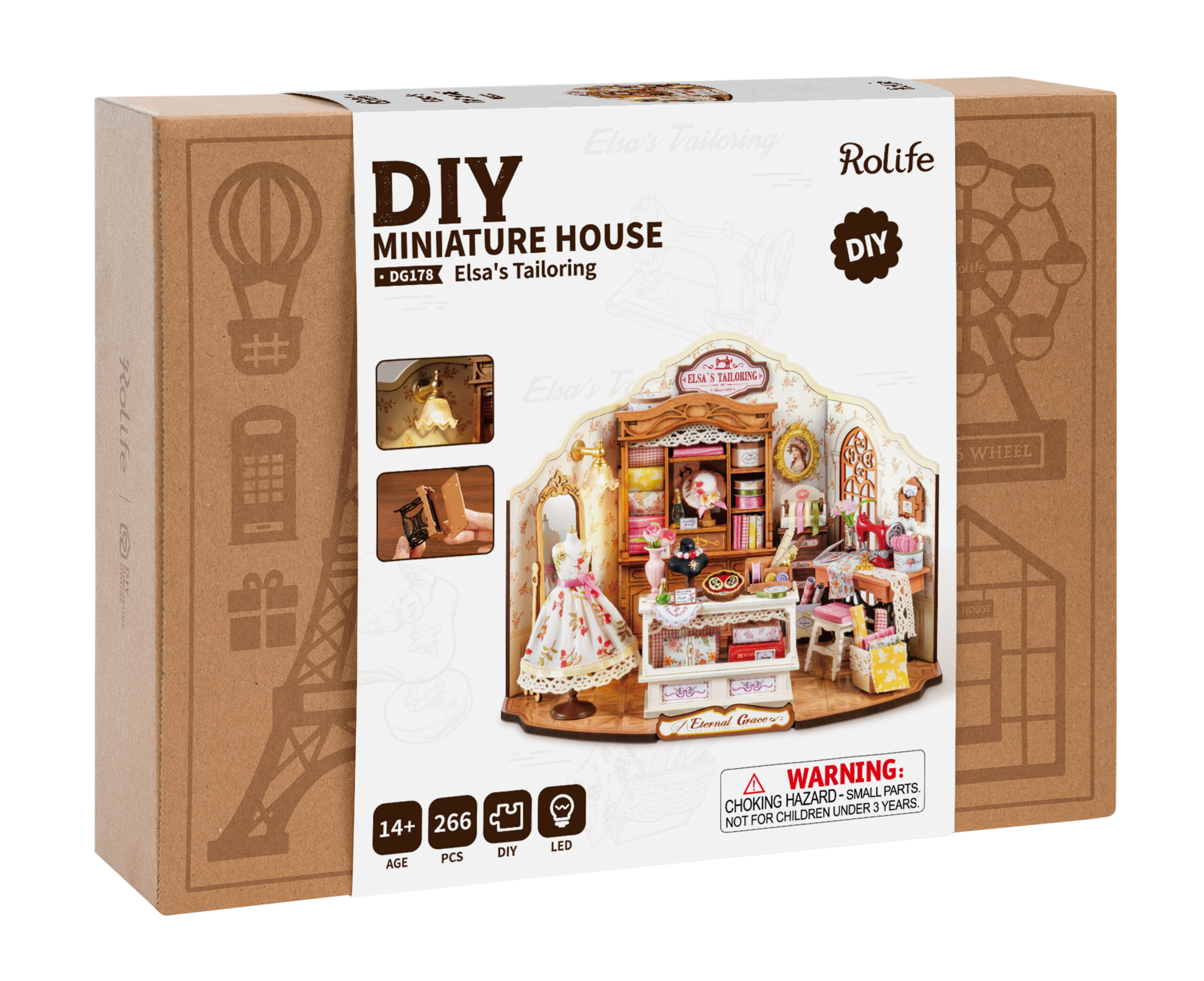 Robotime, DIY Miniatuurhuis, Elsa’s Tailoring, DG178, 23,8×16,5×17,5 cm