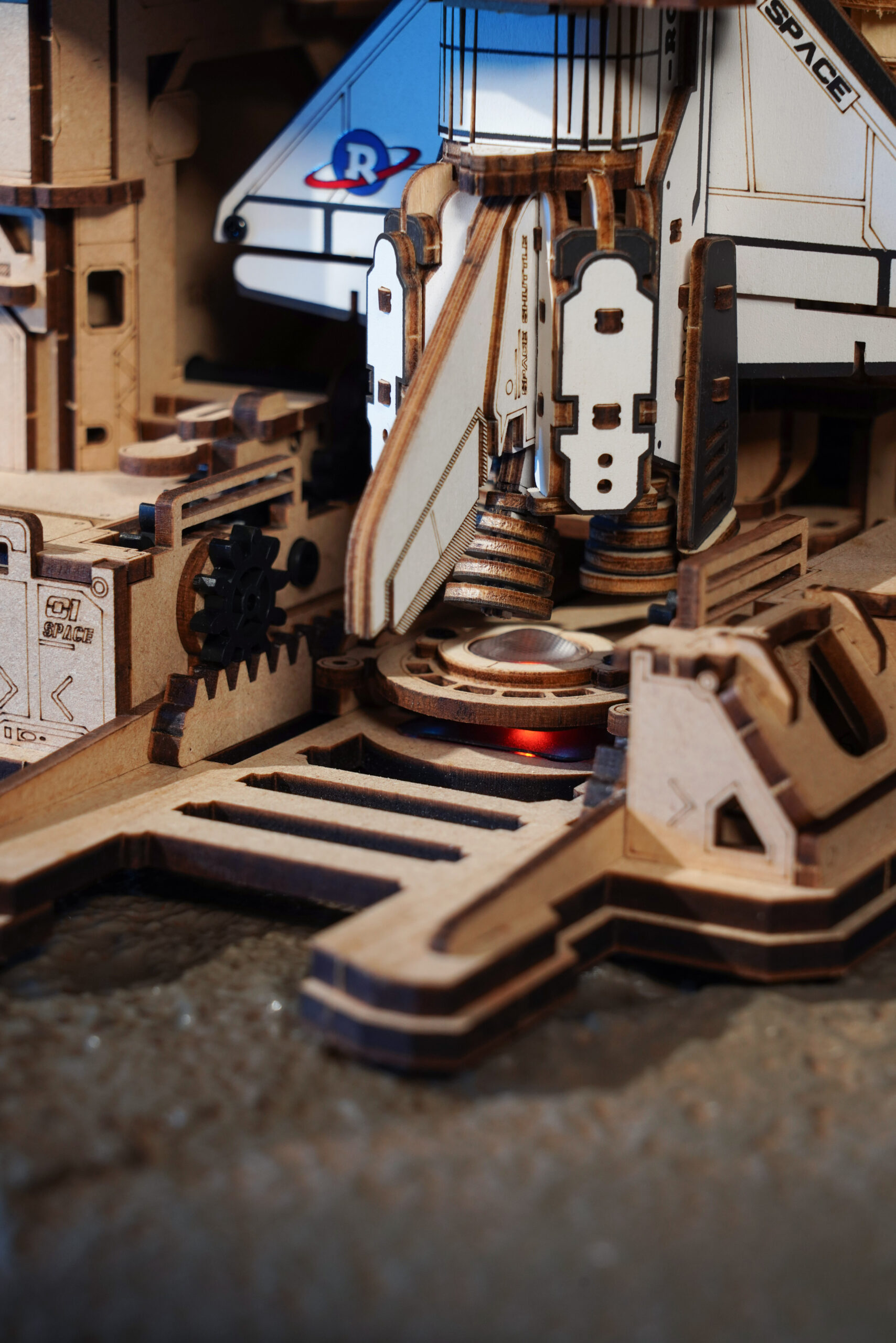 Gemaakt van hoogwaardig laser-gesneden hout, combineert dit bouwpakket techniek, design en creativiteit in één uniek product. Dankzij de mechanische onderdelen kun je de shuttle daadwerkelijk in beweging zetten, wat zorgt voor een levensechte en speelse ervaring.