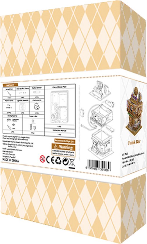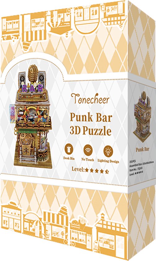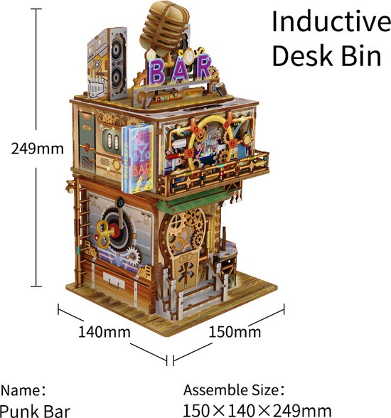 Tonecheer, DIY 3D Houten Puzzel Desk Bin, Punk Bar, TQ183,15x14x25cm