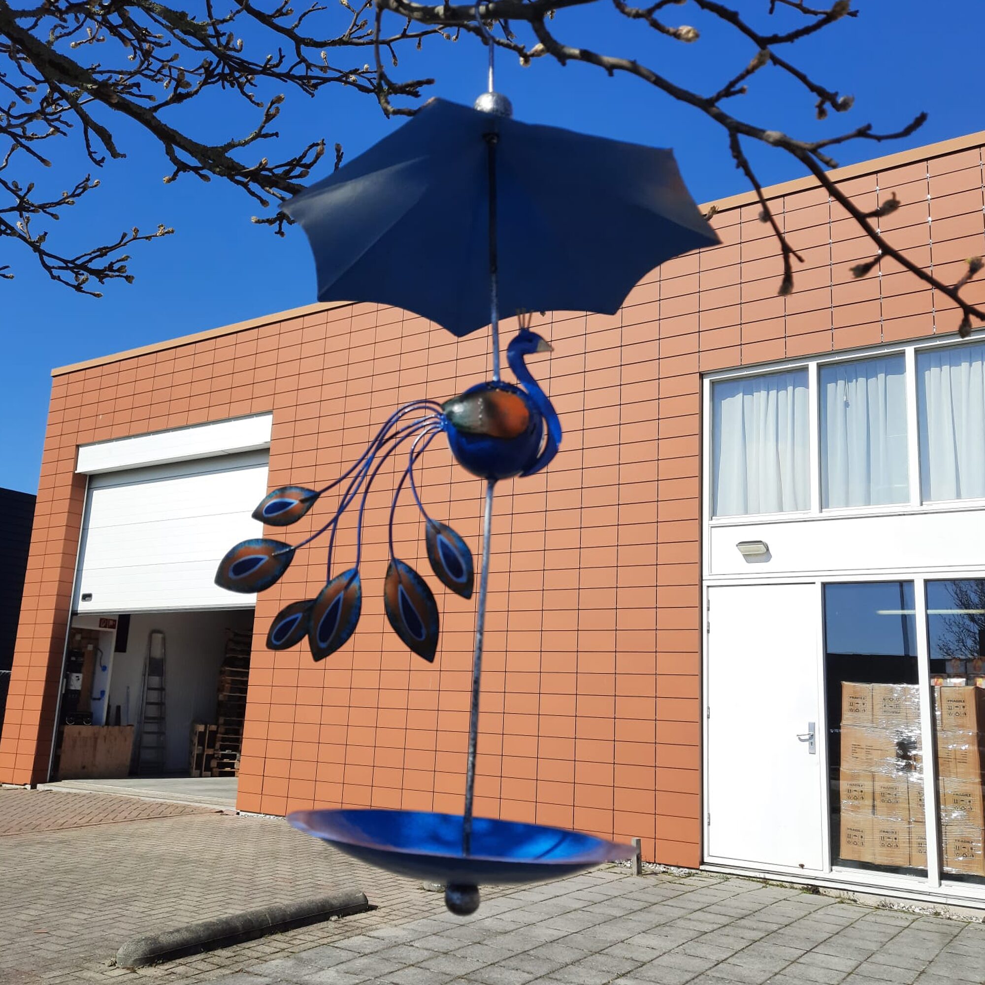 Vogelvoerbakje met Pauw, Metaal, Tuindecoratie, Art Bizniz, Blauw, BW24199, 30x30x57 cm